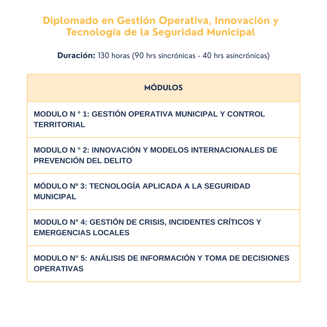 - Diplomado Universitario en Gestión Operativa, Innovación y Tecnología de la Seguridad Municipal