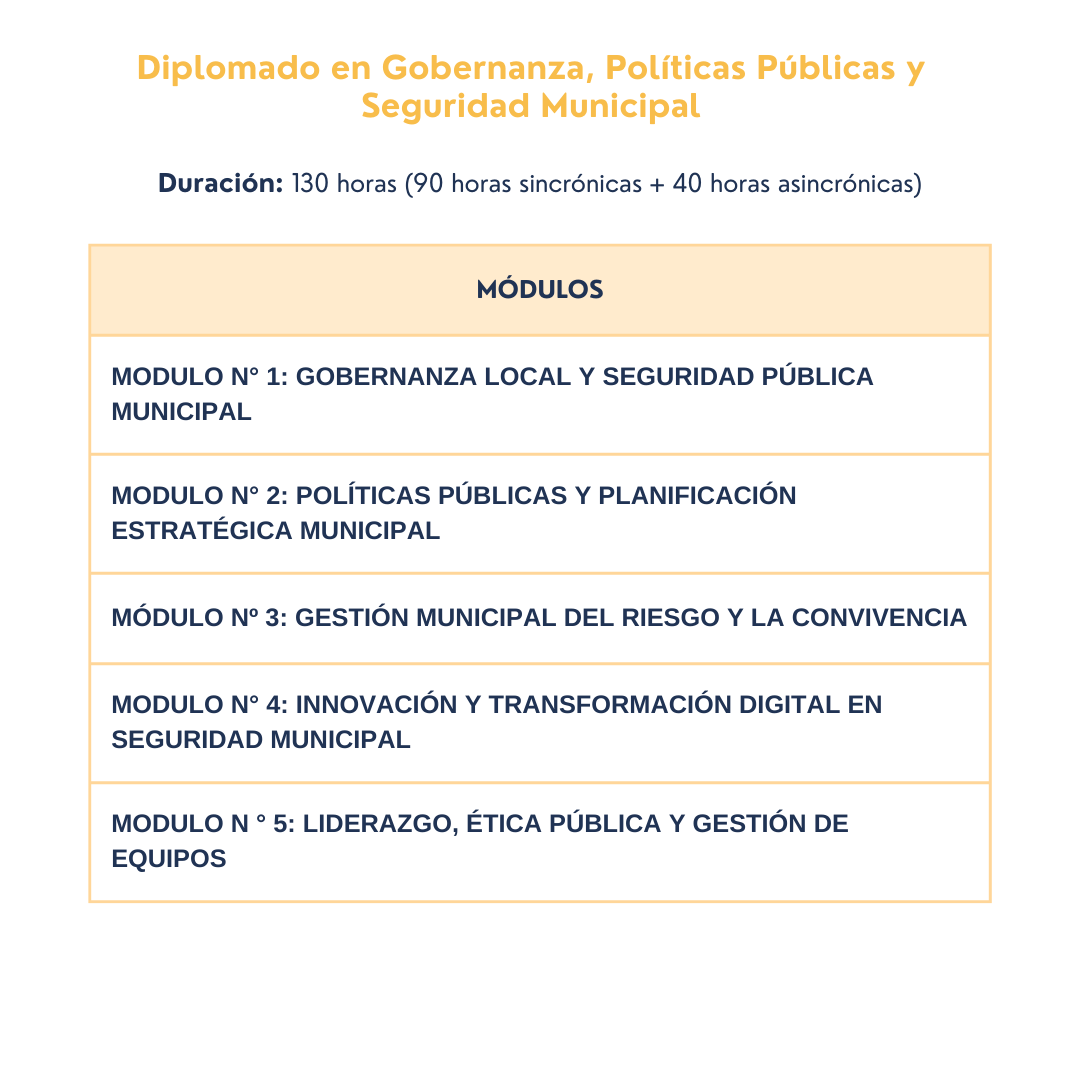 - Diplomado Universitario en Gobernanza, Políticas Públicas y Seguridad Municipal